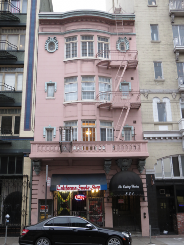 Copyright 2015, Kristi Wachter. Some Rights Reserved.Creative CommonsImage Credit: Kristi Wachter The facade of this 2-part vertical composition shows its rusticated base, cornice, bow window, and bracketed balcony. 821 Geary StreetSites: San Francisco