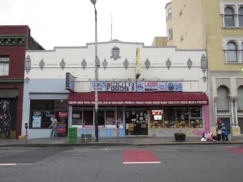 Copyright 2015, Kristi Wachter. Some Rights Reserved.Creative CommonsImage Credit: Kristi Wachter The Geary facade of this retail building shows its stepped parapet and cast Renaissance/Baroque ornamentation. 866 Geary StreetSites: San Francisco