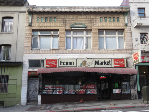 The facade of the McCormick incorporates brickwork in the upper story and a copper cornice and trim.