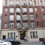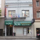 This simple brick building once housed a bakery and apartments. It features lovely brickwork and a handsome galvanized iron cornice.